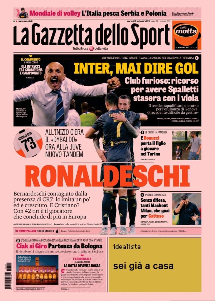 La redazione di CalcioGrifo vi augura il migliore buongiorno con la lettura delle prime pagine dei quotidiani sportivi di oggi
