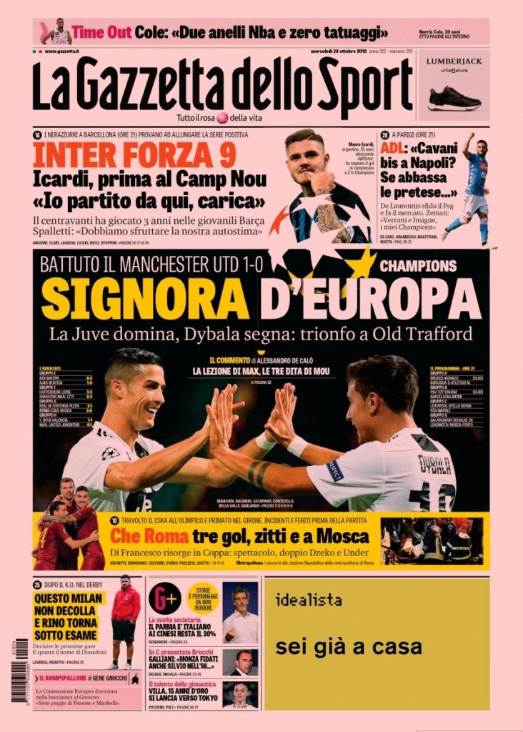 La redazione di CalcioGrifo vi augura una buona giornata con le prime pagine dei quotidiani sportivi di oggi