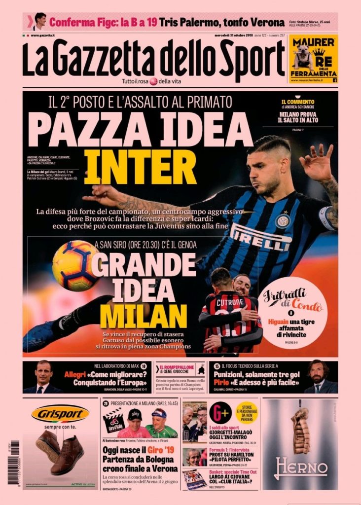 La redazione di CalcioGrifo vi augura buona giornata con le prime pagine dei quotidiani sportivi di oggi