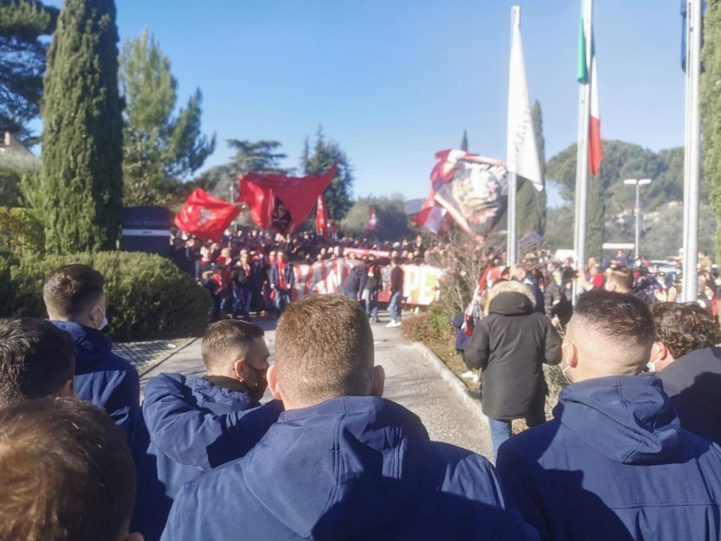 L’accoglienza dei tifosi biancorossi ai pullman delle due squadre Numerosi i tifosi del Perugia che...