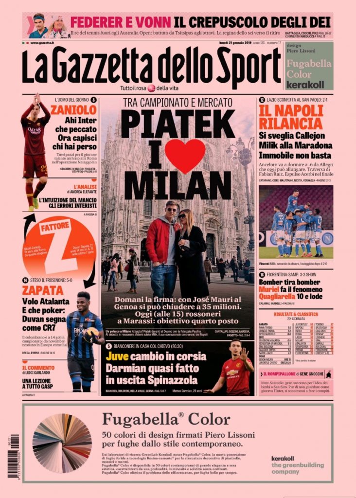 La nostra redazione vi augura buona giornata con le prime pagine dei quotidiani sportivi di oggi