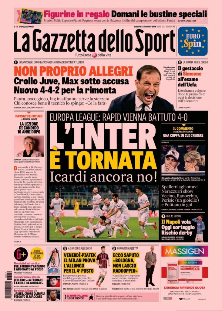 La nostra redazione vi augura buona giornata con le prime pagine dei quotidiani sportivi di oggi