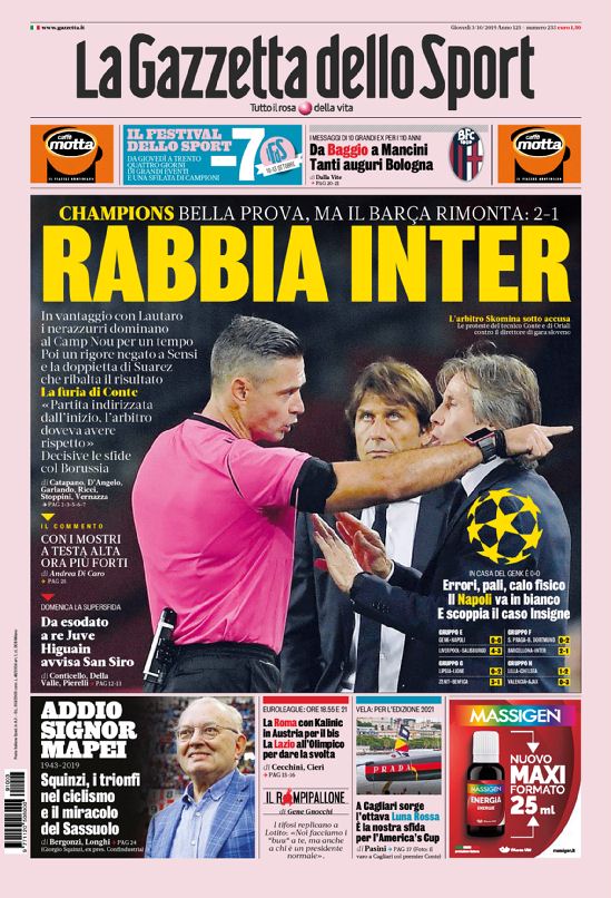 La nostra redazione vi augura buona giornata con le prime pagine dei quotidiani sportivi di oggi