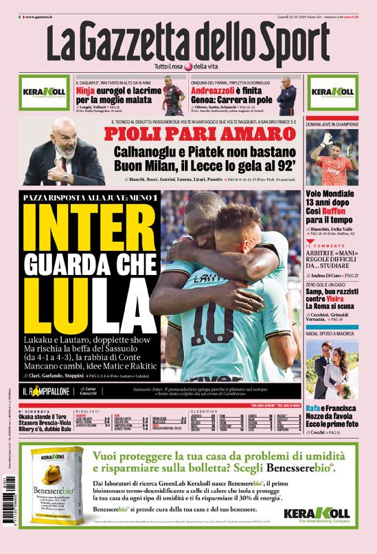 La nostra redazione vi augura buona giornata con le prime pagine dei quotidiani sportivi di oggi