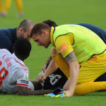 In queste immagini – tratte dalla fotogallery di Roberto Settonce – la sequenza degli attimi immediatamente successivi all’infortunio.