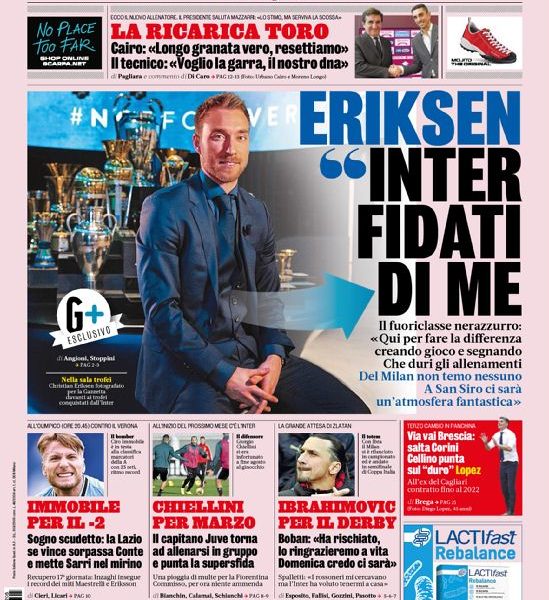 La nostra redazione vi augura buona giornata con le prime pagine dei quotidiani sportivi di oggi