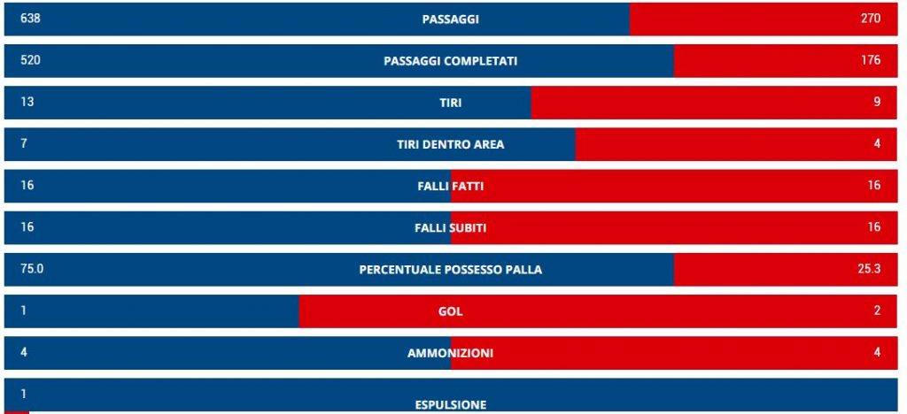 Le statistiche della sfida del Curi, vinta dagli ospiti di Tesser, mostrano una gara a forti tinte biancorosse ma decisa dal cinismo veneto