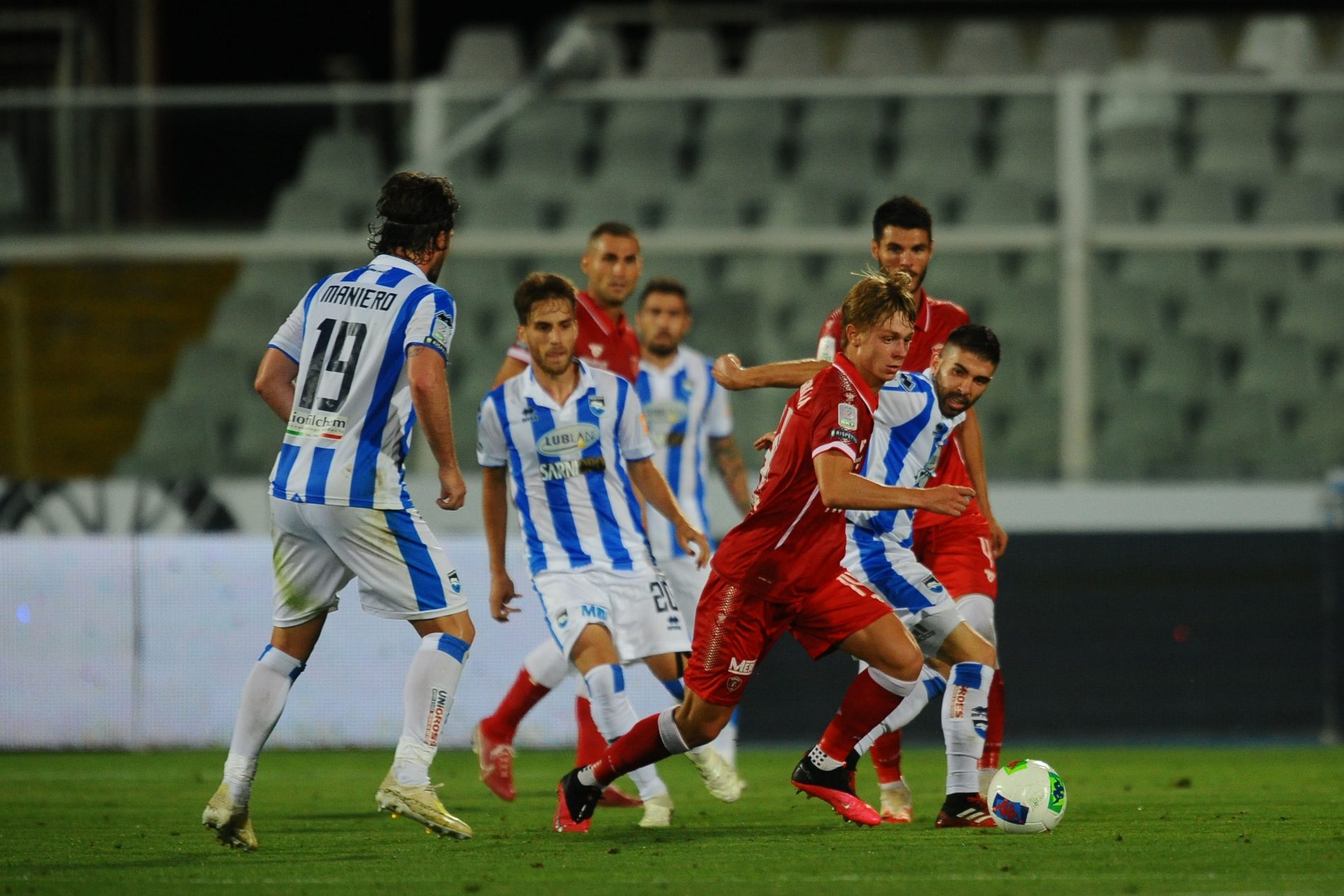 L’esultanza “sofferente” di Iemmello e quella “speranzosa” di Buonaiuto, la mascherina di Vicario e la tenuta “estiva” di Massimiliano Santopadre, arrivato a Pescara per stare vicino alla squadra in questa importante partita.
