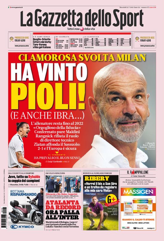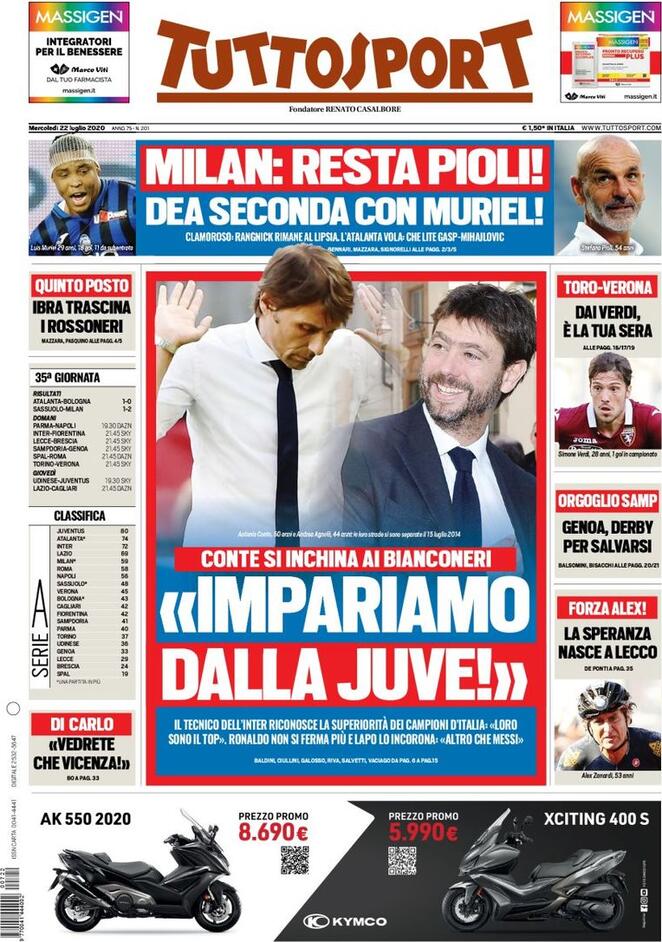 Le prime pagine dei quotidiani sportivi del 22-07-2020