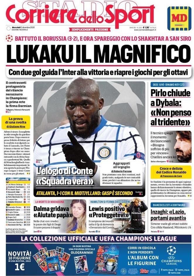 Le prime pagine dei quotidiani sportivi del 2-12-2020