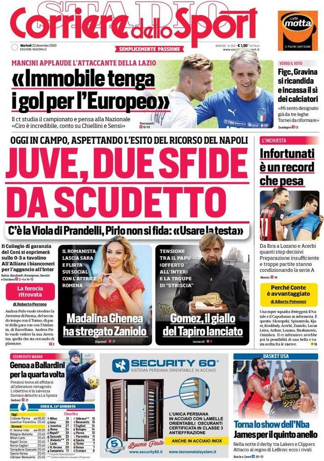 Le prime pagine dei quotidiani sportivi del 22-12-2020