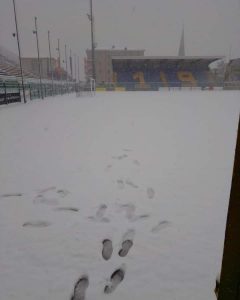 Copiosa neve e temperature basse a Fermo. La società marchigiana non ha coperto il campo con i teloni, ma le proverà tutte per rendere il campo agibile. Per l’ora della partita i gradi saranno sotto zero e c’è rischio ghiaccio