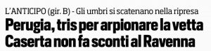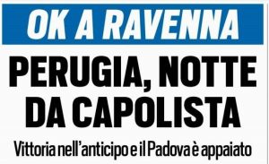 Il Perugia vince 3-0 a Ravenna. Un primo tempo in sordina, un secondo da macchina da gol. I titoli de La Gazzetta dello Sport, de Il Corriere dello Sport e di Tuttosport