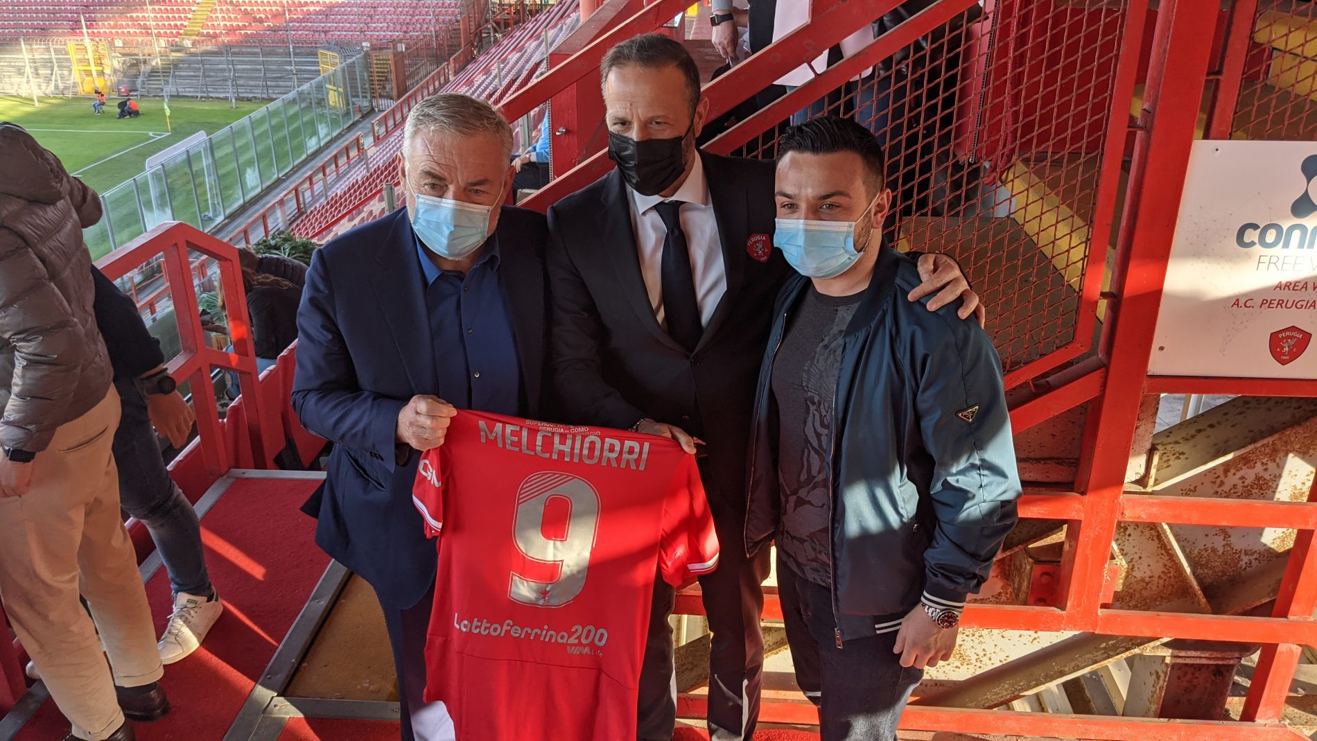 Al sindaco Andrea Romizi è andata la maglia del funambolo Elia, al presidente del Cru, Luigi Repace, quella del baluardo difensivo Angella. Presenti anche il presidente della Lega Pro, Francesco Ghirelli e gli assessori comunali Clara Pastorelli e Luca Merli.