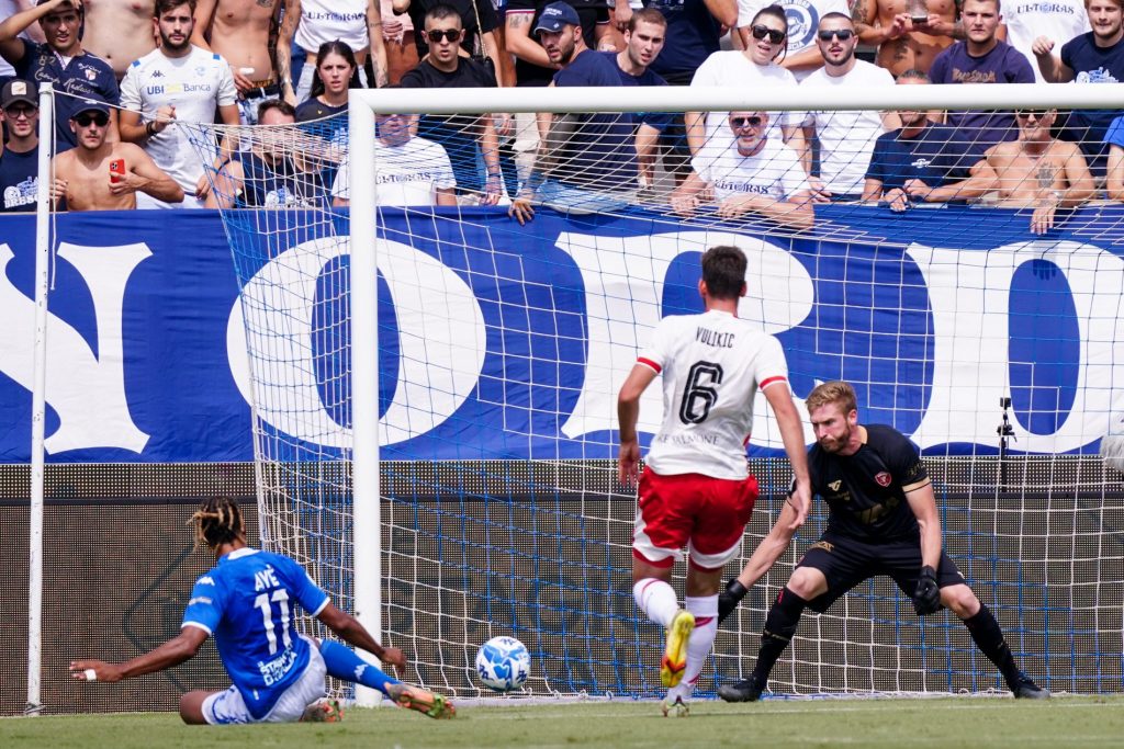 Terza sconfitta in campionato per il Perugia, battuto 2-1 dal Brescia nel match valido per la 4ª giornata di Serie B. Con l’emergenza in difesa (out lo squalificato Sgarbi ma anche Dell’Orco e Lisi, infortunati come Strizzolo) a Fabrizio Castori non sono bastati l’innesto tra i titolari del nuovo arrivato Di Carmine (inizio in panchina per Bartolomei e tribuna per Beghetto) e il gol di Luperini per uscire indenne dal ‘Rigamonti’. Nonostante la buona prova di Paz a sinistra e dello stesso Di Carmine (affiancato da un opaco Olivieri), il Grifo si è fatto infilare subito due volte riuscendo comunque a riaprire il match prima del riposo. Nella ripresa però è stato il Brescia a sfiorare il tris (traversa di Ayé e rigore di Moreo parato da Gori), con il Perugia costretto a incassare un nuovo ko.