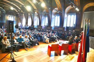 Cinque ottobre 2025 sala dei Notari: la città di Perugia, a 50 anni esatti dalla prima partita, festeggia il mezzo secolo dello stadio Renato Curi con l’evento “Curi 50, 50 anni insieme: uno stadio, una città, una storia di emozioni e passione”. Durante l’incontro si sono alternati sul palco coloro che in questo mezzo secolo hanno contribuito a scrivere la storia dello stadio: tecnici, tifosi, amministratori, calciatori, allenatori, giornalisti. È stato il racconto delle gesta del Perugia calcio, soprattutto quello dei Miracoli, ma anche il racconto di una città e della sua gente, di una stagione culturale e politica irripetibile.