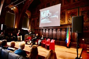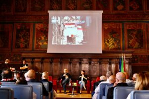 Ravanelli ha invece raccontato le emozioni di vivere lo stadio Curi da calciatore perugino doc, “perché ognuno di noi da piccolo era nato e cresciuto a “pane e Perugia”. La sezione successiva dell’incontro è stata dedicata ai ricordi della procedura che portò all’edificazione in tempi record del nuovo stadio comunale di Pian di Massiano. Sul palco il progettista Corradi, il geometra del Comune Cirimbilli, il figlio di Spartaco Ghini, titolare della Sicel, Francesco, il vice sindaco nel 1975 Ciuffini. In occasione della festa celebrativa l’ingegner Corradi, oggi 99enne, ha fatto dono al Comune di Perugia delle tavole originali del progetto.