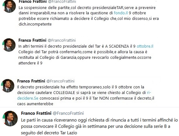 Revoca del provvedimento d’urgenza e Camera di consiglio anticipata al 26 settembre per la decisione collegiale. Il ricorso della Figc...