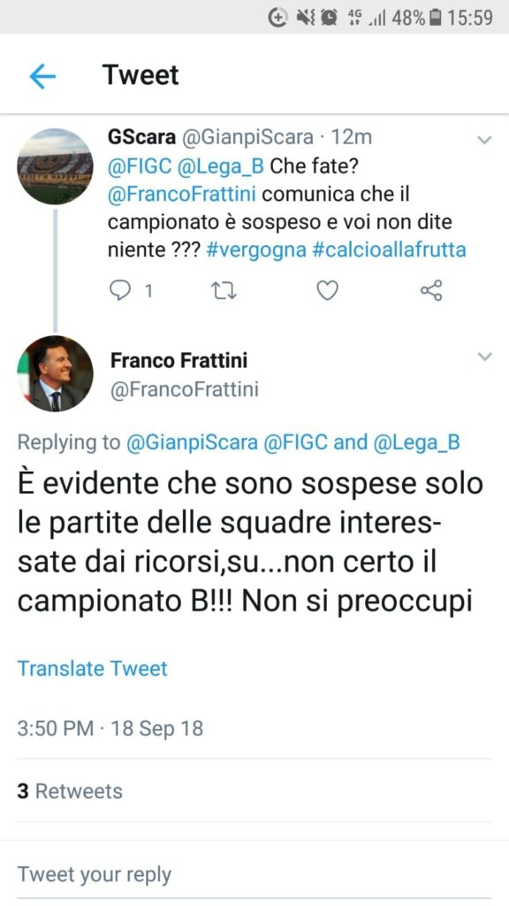 “Il Tar ha sospeso il campionato”. Poi ritratta su twitter. Il presidente del Collegio del Coni sta aggiungendo confusione alla...